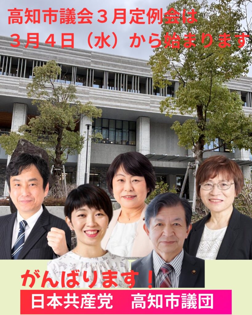人口減少や南海トラフ地震への備え、老朽化する公共施設の問題など、高知市が抱える課題は山積しています。日本共産党市議として、市民の声を大切にしながら、暮らしを守る立場で議会に臨んでいきます。